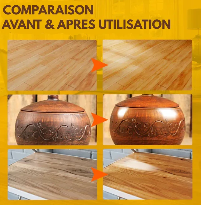 Restaure l'éclat naturel du bois tout en réduisant l'apparence des rayures et des signes d'usure.